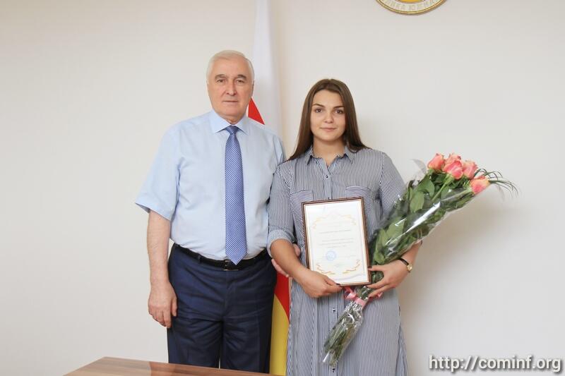 В заключение встречи Леонид Тибилов вручил Кристине Дудаевой благодарственное письмо за высокие достижения в области спорта и поощрил ее денежным вознаграждением.