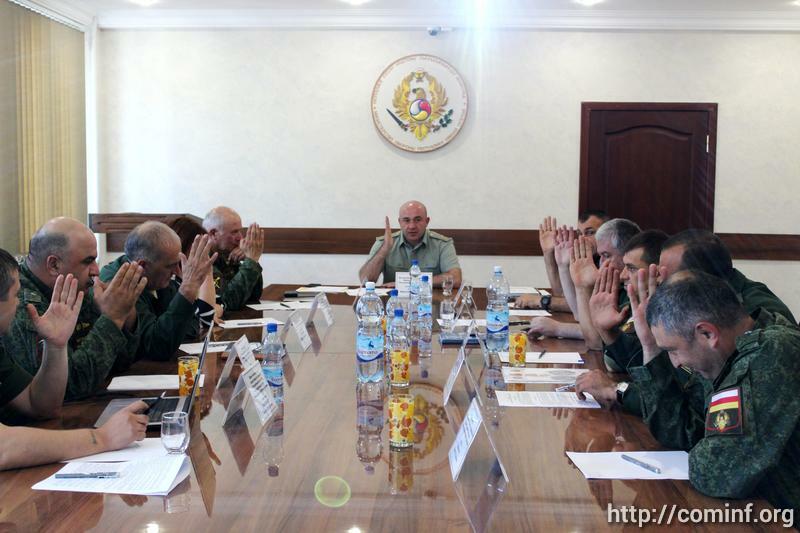 В повестку дня первого заседания Военного совета вошли следующие вопросы: цели и задачи Военного совета ВС РЮО, отбор офицеров МО РЮО для обучения в общевойсковой и артиллерийской академии сухопутных войск ВС РФ, утверждение макета медали Валерия Хубулова.