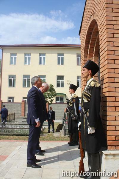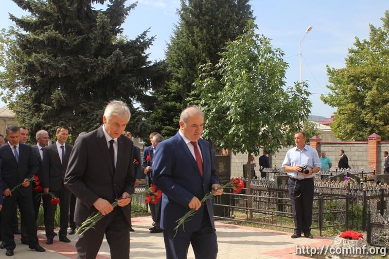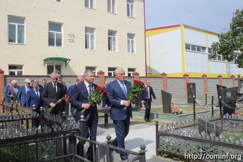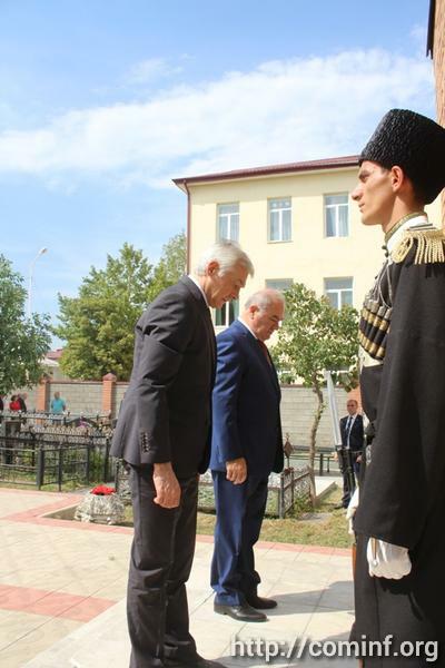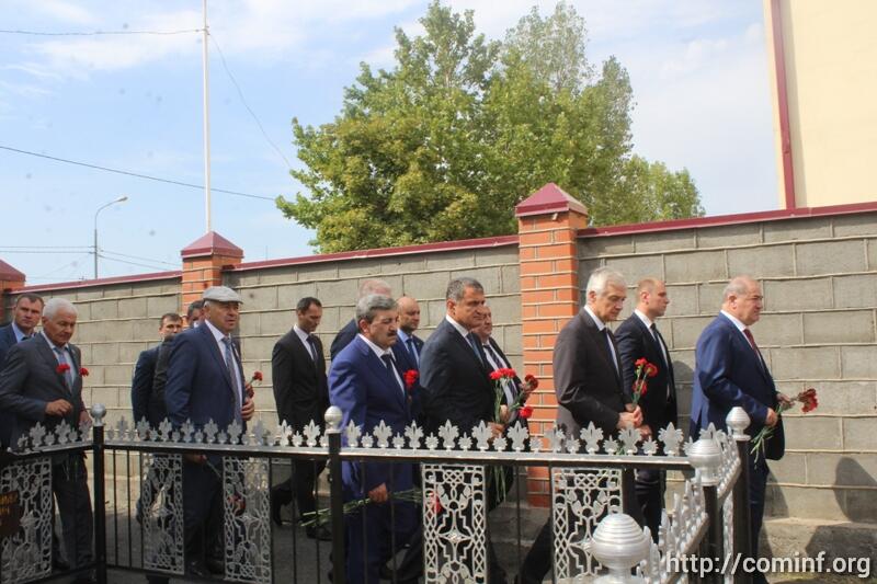 прибывшими сегодня в Республику на празднование Дня признания государственной независимости Республики Южная Осетия Российской Федерацией возложили цветы к часовне на Мемориальном кладбище во дворе Цхинвальской школы №5 в память о жертвах грузинской агрессии.