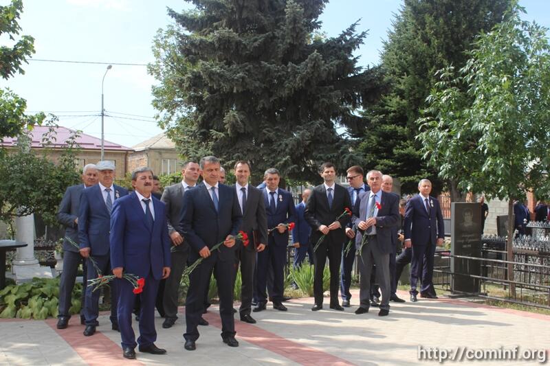 Президент Южной Осетии Леонид Тибилов, спикер парламента Республики Анатолий Бибилов, председатель правительства Доменти Кулумбегов, заместитель председателя правительства Алан Техов, руководитель Администрации президента Алан Джиоев и члены североосетинской делегации во главе с врио главы Республики Северная Осетия-Алания Вячеславом Битаровым,