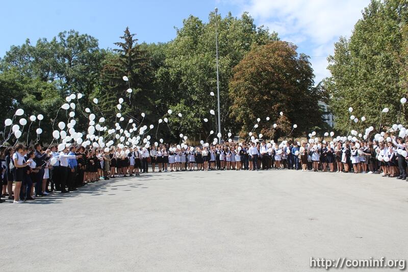 В 13.05 раздался колокольный перезвон и учащиеся республиканских школ запустили в небо 335 воздушных шаров.