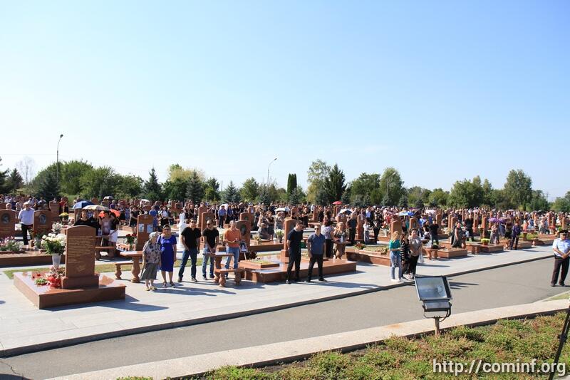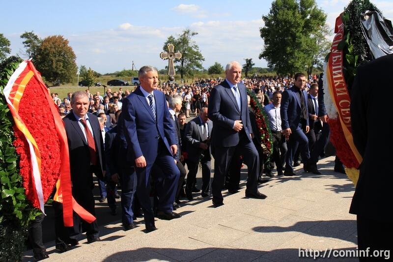 На Бесланском кладбище в "Городе Ангелов" президент Леонид Тибилов и врио главы РСО-Алания Вячеслав Битаров, тысячи собравшихся школьников, учителя, горожане, представители православного и мусульманского духовенства, национально-культурных и молодежных движений, возложили венки и цветы к мемориалу "Древо жизни".