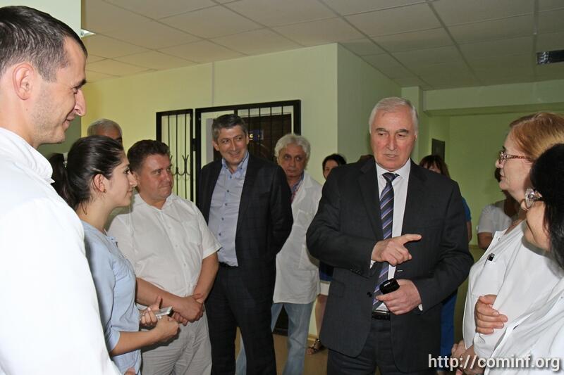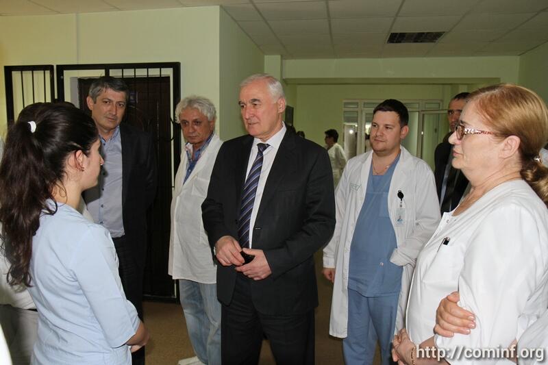 В сопровождении государственного советника президента РЮО Родиона Сиукаева, и.о. министра здравоохранения Агунды Плиевой, советника по поросам здравоохранения из РФ, профессора Игоря Галя и главврача Республиканской больницы Маирбега Кокоева президент прошел по отделениям.