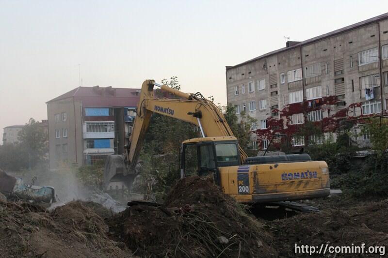 На сегодняшний день работы по сносу ветхого строения, нефункционирующей катальни, ведется на перекрестке улиц Мамсурова и Остаева.