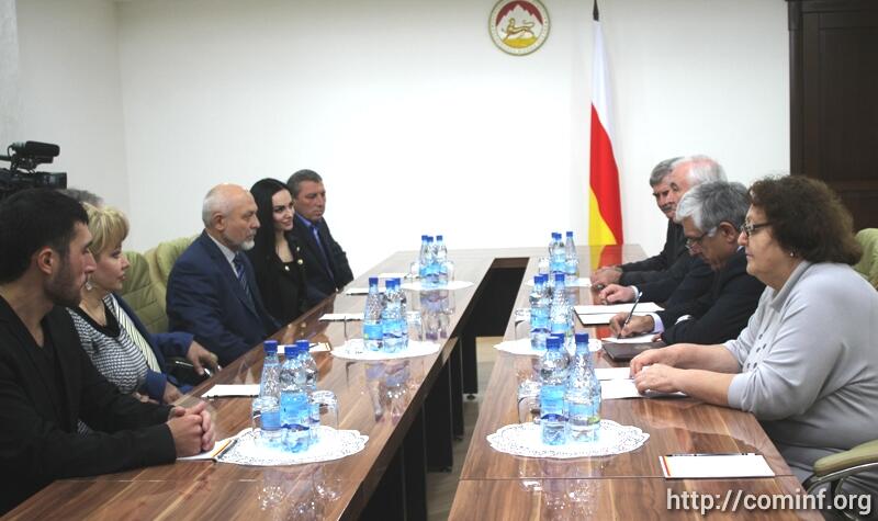 На встрече также присутствовали заместитель председателя правительства Южной Осетии Эрик Пухаев, замруководителя Администрации президента Константин Пухаев, министр культуры Республики Мадина Остаева.