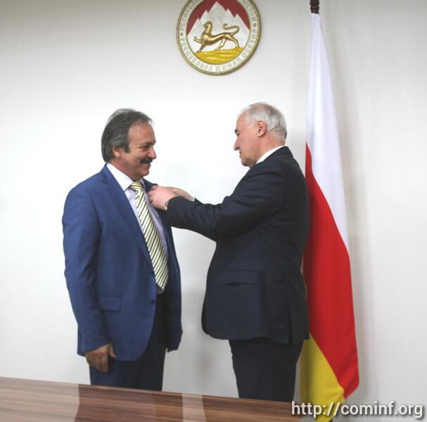 Президент Федерации альпинизма РСО-Алания Казбек Хамицаев приветствовал Леонида Тибилова от имени главы Северной Осетии, который, по его словам, передал добрые пожелания президенту и народу Южной Осетии.
