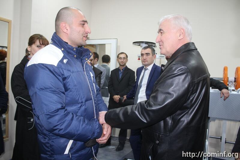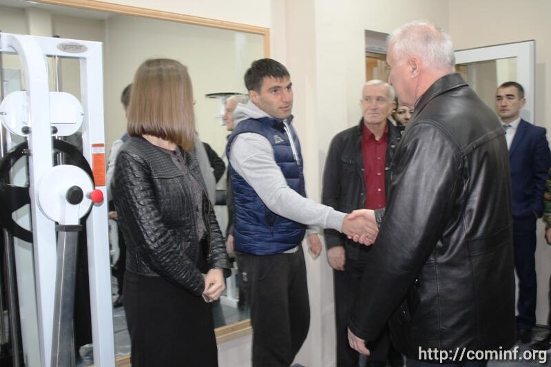 На церемонии открытия тренажерного зала также присутствовали заместитель главы администрации города Дмитрий Пухаев, глава и представители Комитета по молодежной политике, спорту и туризму Южной Осетии.