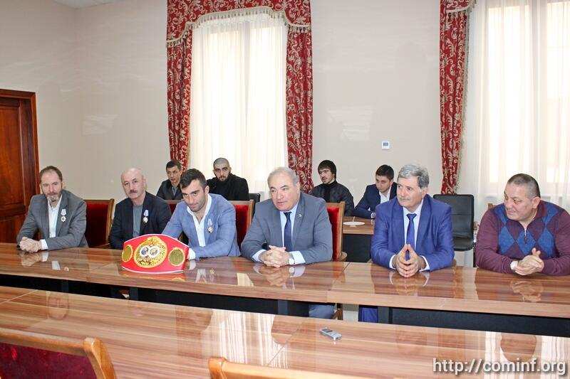 Председатель Правительства Доменти Кулумбегов встретился с чемпионом мира по версии IBF Муратом Гассиевым, его тренером Виталием Слановым и промоутером Алексеем Васильевым.