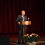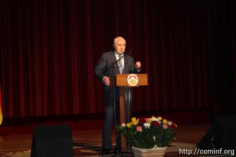 В начале торжественного собрания прозвучал гимн Республики, после чего участников собрания приветствовал генеральный прокурор Республики Южная Осетия Урузмаг Джагаев.