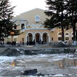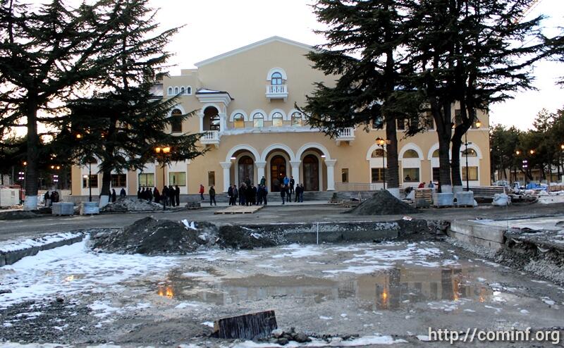 Далее состоялся осмотр Государственного драмтеатра Южной Осетии, где североосетинские художники недавно приступили к росписи зрительного зала.