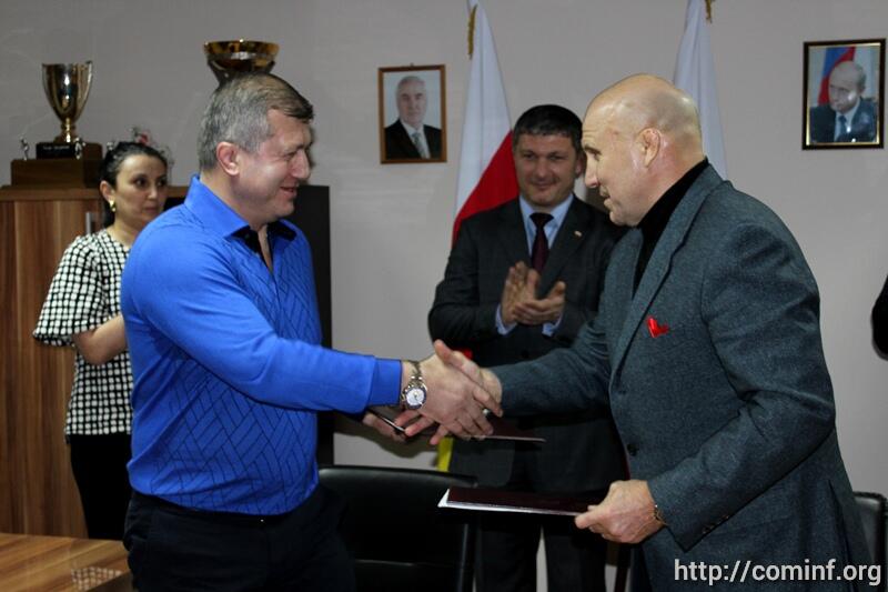 Соглашение подписали Президент Федерации борьбы Южной Осетии Дзамболат Тедеев и Президент Федерации спортивной борьбы России Михаил Мамиашвили.