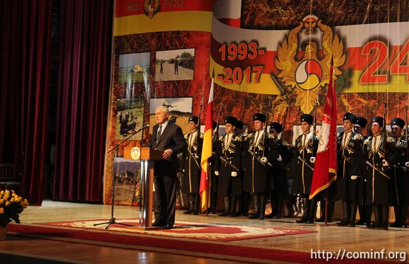 Торжественное собрание, посвященное Дню защитника Отечества и 24-й годовщине со дня образования Министерства обороны Республики Южная Осетия прошло в сегодня ГККЗ «Чермен».