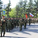 В репетиции приняли участие курсанты Донецкого высшего общевойскового командного училища (ДОНВОКУ). Военнослужащие Донецкой Народной Республики в этом году впервые будут участвовать в военном параде 9 мая в столице Южной Осетии.