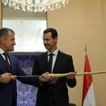 Главы двух государств также обменялись памятными подарками. Бибилов привез сирийскому лидеру символичный подарок, как он выразился, «кавказскую саблю из дамасской стали».
