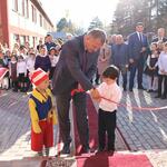 Президент перерезал красную ленточку, после чего осмотрел помещения в здании дворца.