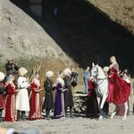 На оборудованной сцене бодро оживилась картина из жизни Коста. Актёры показали праздник в селе, где говорили о творчестве поэта. Туда же попадает сам поэт в качестве незнакомого гостя, но не раскрывает сельчанам, кто он. Ничего не подозревающие люди воспевают имя Коста, с особым чувством читают его стихотворения, поют его песни. В конце поэт, услышав, насколько люди его любят, раскрывает свою личность, а мероприятие завершается трюками на лошадях.