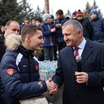 Еще один подарочный сертификат на сумму 30000 рублей Анатолий Бибилов вручил Азамату Кочиеву. Его поступок достоин уважения и похвалы. Когда водителю автобуса стало плохо во время рейса Цхинвал-Знаур, Азамат не растерялся и быстро среагировал на ситуацию, взял в свои руки управление автобусом и не дал свершиться трагедии.