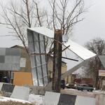 Ураганный ветер стал причиной падения не только деревьев и крыш домов, но и дорожных знаков, магазинных вывесок и плакатов в разных окрестностях Цхинвала.