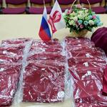 По ее словам, футболки, бейсболки, ручки, брелки переданы фондом «Русский мир» из Москвы.